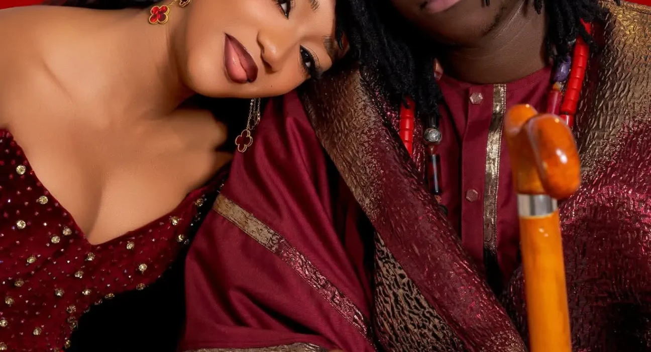 Entre tradition revisitée et haute couture, le couple mise sur des teintes bordeaux et bronze, sublimées par des détails en velours et des parures de perles traditionnelles.Une esthétique soignée qui confirme le statut d’icône de mode de la comédienne. Félicitations aux jeunes mariés qui continuent de faire rêver la toile par leur prestance et leur complicité évidente.