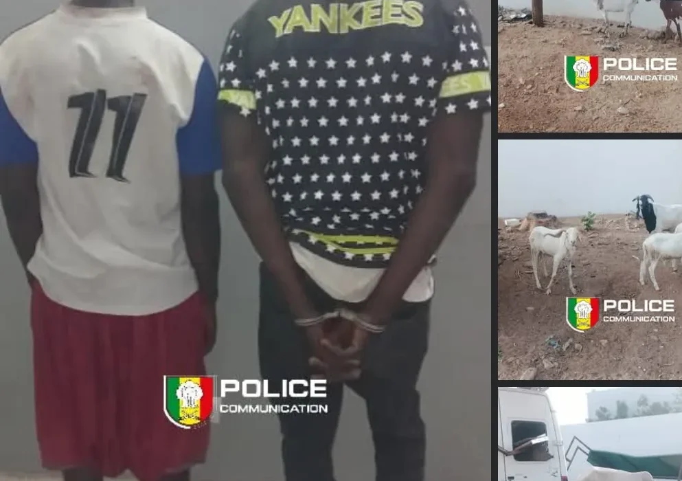 La Sûreté Urbaine du Commissariat Central de Kaolack, en collaboration avec la Brigade de recherches du Commissariat de Ndorong, a démantelé un réseau spécialisé dans le vol de bétail. Deux individus ont été interpellés pour association de malfaiteurs, vol de bétail commis la nuit, en réunion et recel.